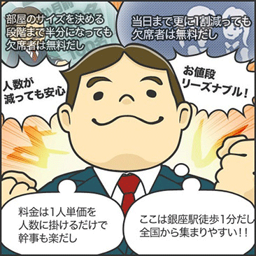 個室のキャンセル料や欠席者の代金等の心配がついてきます